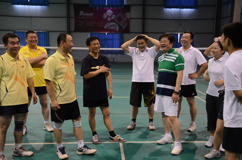 2012年5月19日陕西出版集团印刷物资有限责任公司与金东纸业西安公司羽毛球友谊比赛在石羊山庄举行。